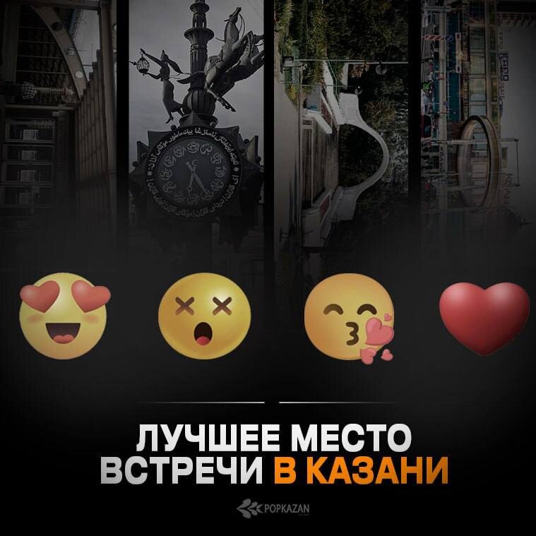 🔥 Перед вами одни из самых знаковых мест города, где легче всего договориться о встрече. Если вы знаете еще такие «магнитные места», то пишите их названия в комментарии ... 😍 - Метро «Проспект Победы» 😱 - Часы на Баумана 😘 - Парк «Черное озеро» ❤️ - Вход в ТЦ Кольцо
