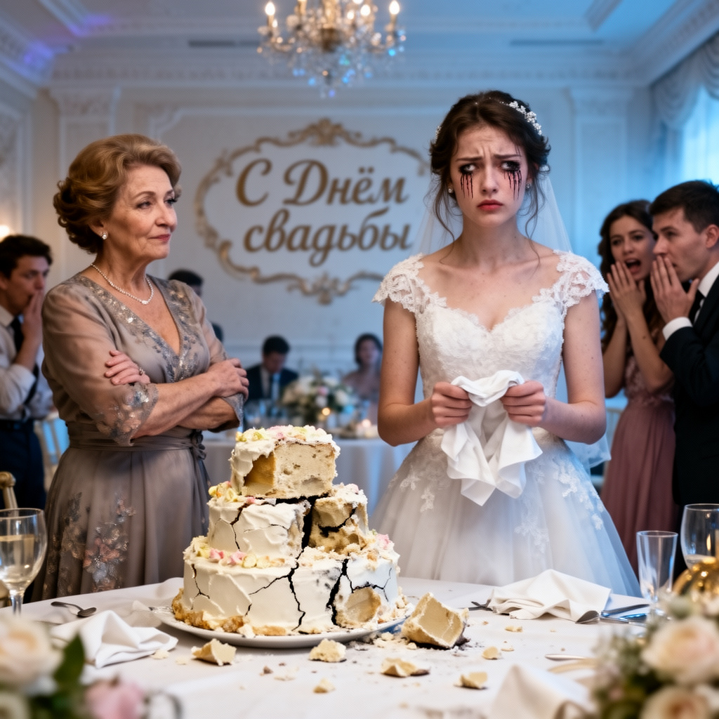 Я стояла в своём платье за восемьдесят тысяч. Смотрела на кривой торт с жёлтым кремом и запахом тухлятины.