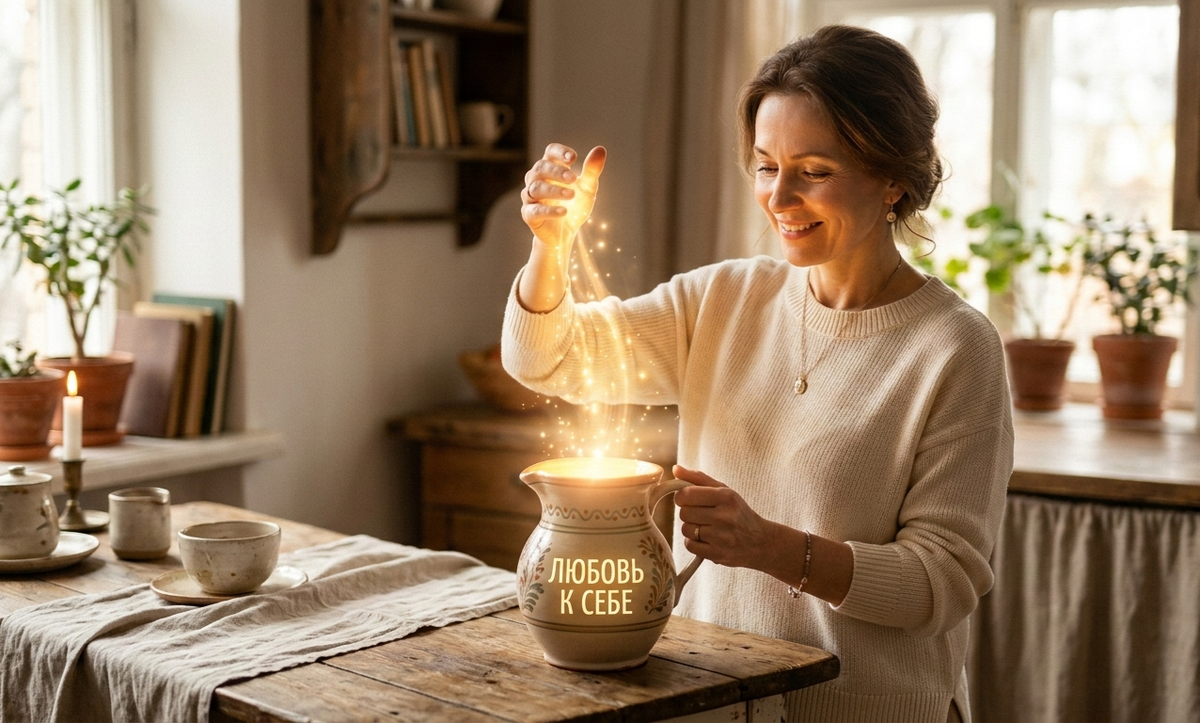 Любовь к себе — это когда ты наполняешь свой кувшин до краев. Когда ты выспалась, когда ты спокойна, когда у тебя есть свои маленькие радости. И тогда твоя забота о близких льется сама собой, легко и естественно. Ты делишься счастьем, а не усталостью.