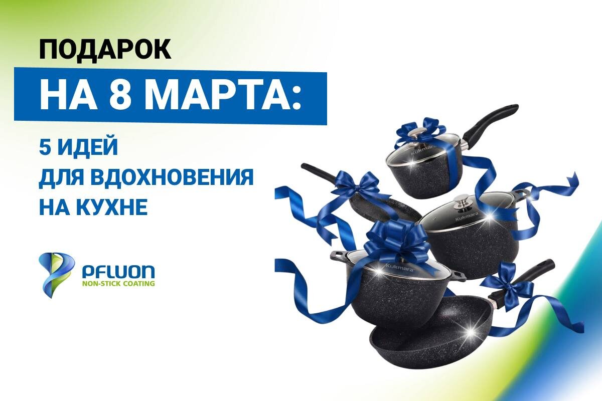 В преддверии 8 Марта хочется найти подарок, который будет не просто красивым, но и по-настоящему нужным. Что, если отойти от традиционных цветов и парфюма и подарить то, что будет создавать уют и радовать каждый день? То, что вдохновит на творчество и, возможно, вернется к вам восхитительным ужином или идеальным завтраком. Качественная посуда — это источник вдохновения. Мы в PFLUON, как эксперты в области современных покрытий, собрали для вас 5 идей подарков, которые точно оценит любая хозяйка. Если вы хотите, чтобы она больше и смелее экспериментировала на кухне, не ограничивая свою фантазию, то ваш выбор — универсальный подарочный набор от Kukmara. Это настоящая мечта для того, кто любит готовить. Когда под рукой есть посуда разного объема и назначения, любой, даже самый сложный рецепт становится проще. В таком наборе найдется и кастрюля для супа, и сотейник для рагу, и сковорода для быстрой обжарки. А надежное антипригарное покрытие PFLUON на каждом предмете гарантирует, что кулинар