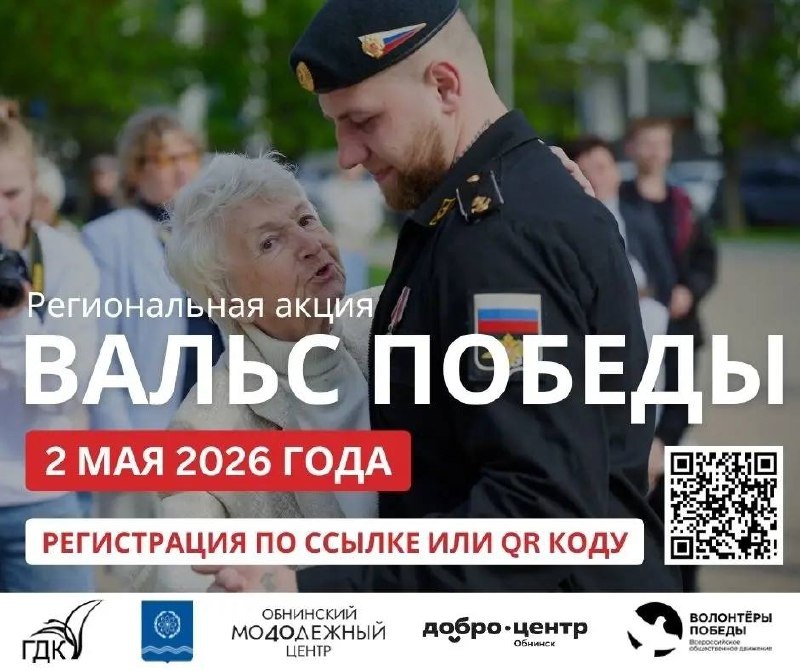 ! Акция «Вальс Победы» – символ единства поколений, возможность выразить благодарность ветеранам и почтить память тех, кто отдал свою жизнь, защищая нашу Родину. 2 мая на площади у Дома учёных мы вновь закружимся в танце. В этот раз в качестве музыкальной композиции выбран «Майский вальс», написанный в 1985 году. Репетиции «Вальса Победы» будут проходить по понедельникам, средам и пятницам (кроме 6 и 9 марта) с 19:30 до 21:30 в Обнинском молодёжном центре по адресу: ул. Комарова, 6. Регистрация на акцию продлится до 31 марта по ссылке: https://clck.ru/3S4FHx Ждём вас на репетициях! #молодёжьобнинска
