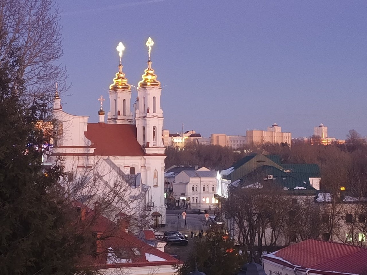 "Горящие" в лучах заката купола Воскресенской церкви в Витебске