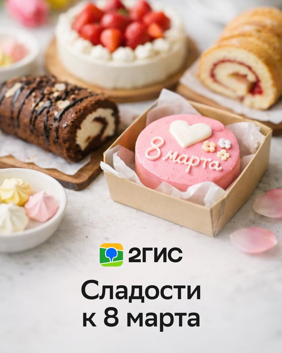 » 💚 Такие фразы появляются на бенто-тортах к 8 марта. А спрос на сладости на заказ в миллионниках в это время вырастает почти в 3 раза. Мы посмотрели, сколько стоит классический бенто-торт в разных городах. ➡️ Средняя цена по России — 1740 ₽. Где дешевле всего: — Волгоград — 1250 ₽ — Ростов-на-Дону — 1290 ₽ — Омск — 1300 ₽ Где дороже: — Санкт-Петербург — 2425 ₽ — Москва — 2278 ₽ — Новосибирск — 2246 ₽ Цены на бенто-торты можно посмотреть в карточках кондитерских — в разделе «Цены». А если хотите другие сладости — меренговые рулеты, шоколад ручной работы или клубнику в шоколаде — их тоже можно найти в 2ГИС.