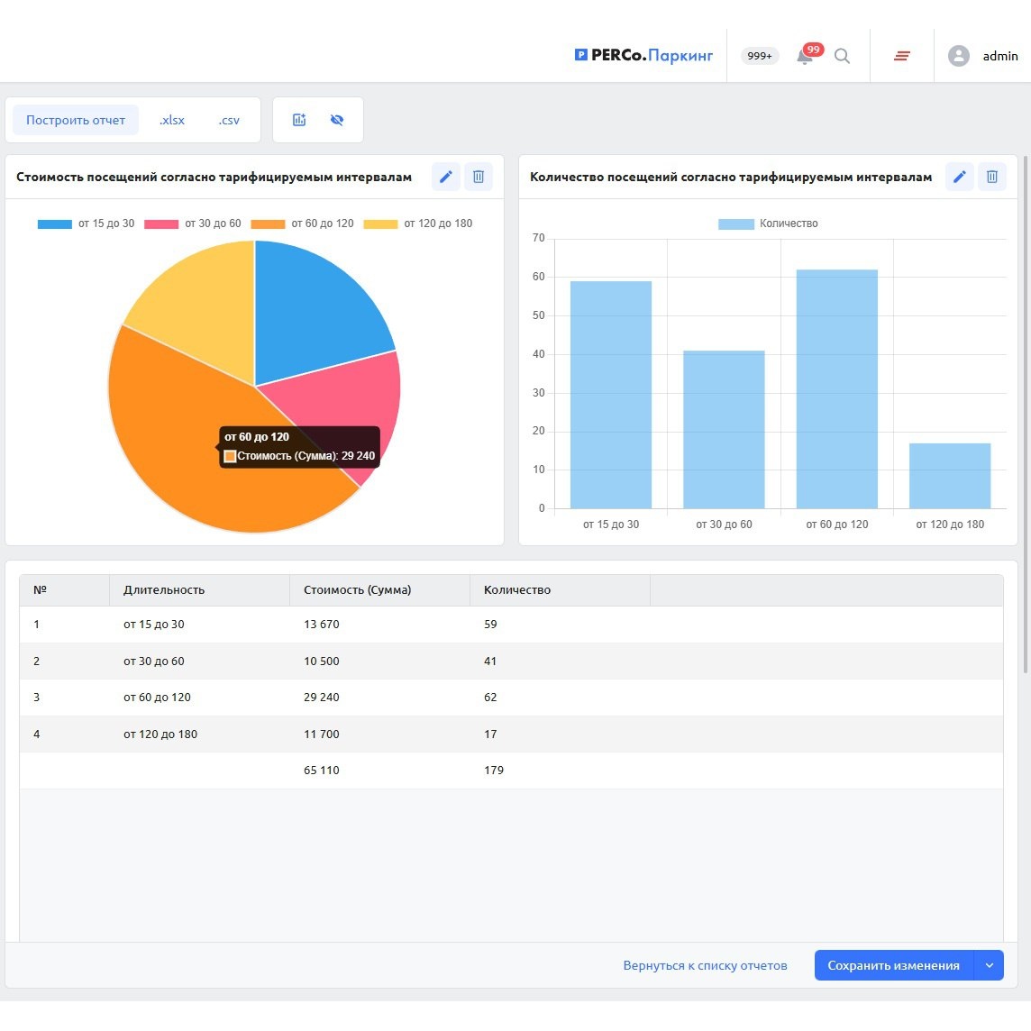В новой версии системы PERCo.Паркинг добавлен модуль «Конструктор отчетов». Модуль предназначен для анализа данных о проездах, платежах и клиентах. Он дает возможность гибко настраивать фильтры и группировать данные с учетом особенностей конкретного объекта. Основные преимущества Автоматизация: формирование и рассылка отчетов по расписанию. Визуализация данных: представление информации в виде таблиц, графиков и диаграмм. Удобство эксплуатации: интуитивно понятный интерфейс позволяет настраивать отчеты без специальной технической подготовки. «Конструктор отчетов» помогает оценивать операционную эффективность парковки, анализировать применяемые тарифы и зонирование, контролировать технические события. Подробнее о возможностях парковочной системы PERCo.Паркинг — по ссылке.