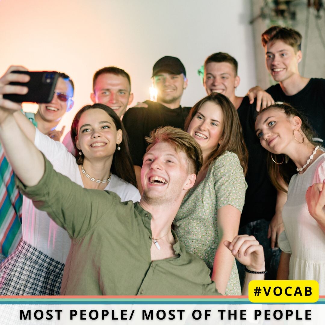 ✅ Most people — это просто «большинство людей». Здесь нет четкого указания на какую-то конкретную компанию или ситуацию. Например: Most people love pizza. ✅ Most of the people значит примерно то же самое, но добавляет акцент на определенную группу людей. Обычно применяется там, где заранее ясно, о ком речь идет. К примеру: At the birthday party, most of the people danced till late night. Запомнить легко: — Если говоришь обо всех людях сразу, используй most people. — Если хочешь уточнить, что говоришь о конкретной группе людей, выбирай most of the people. Попробуйте придумать одно предложение с каждым вариантом и напиши их тут. Будем рады увидеть ваши примеры!