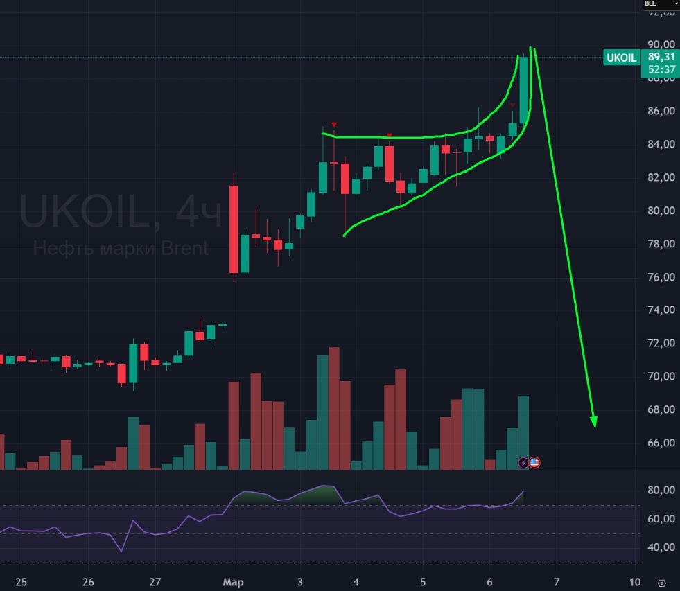 🛢 Нефть: Обновление графика 🟢Вертикальная динамика во всей красе. Самая большая 4-х часовая свечка за все время конфликта. При этом особо острых новостей нет. Рост на небольшом объеме, что говорит о том, что продавцов нет - все поверили в рост, стакан легко выкупается на вертикальной ракете. #нефть #brent #br1 #bogdanoffinvest $BRJ6 $BMJ6 $BRK6 $BMK6 $BRM6 $BMM6