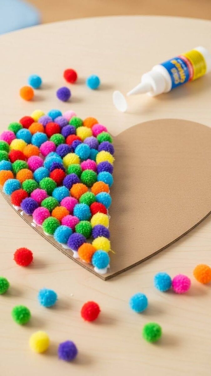 Яркие поделки из помпонов 🟢🟡🟠🔴🟣🔵