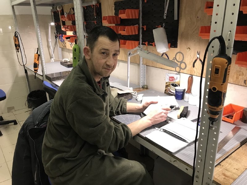 Подопечный социально-реабилитационного центра для бездомных людей «Тёплый приём» Артемий Кульков успешно завершил обучение в кожевенной мастерской. В скором времени он отправится в центр со схожим названием в Ленинградской области – «Тёплый Север». Из барсетки, словно из матрёшки, Артемий вытащил кошелёк, картхолдер. Все эти изделия он сшил сам. «Могу кому-нибудь подарить», – с гордостью показывая каждое изделие, говорит мужчина. И вправду такую красоту не стыдно преподнести в дар. До приюта мужчина с кожей ничего общего не имел. Здесь всё для него было в новинку. Особенно приятно его удивило заботливое отношение сотрудников к бездомным. Он и представить себе не мог, что где-то есть приют, в котором живут такие же, как он люди, в хороших условиях, получают лечение, вкусно питаются. И всё это бесплатно и бескорыстно. Артемия привезли сюда в октябре прошлого года прямо из больницы, где он перенёс несколько операций. «В поисках работы приехал в столицу из Карелии», – рассказывает о себе б