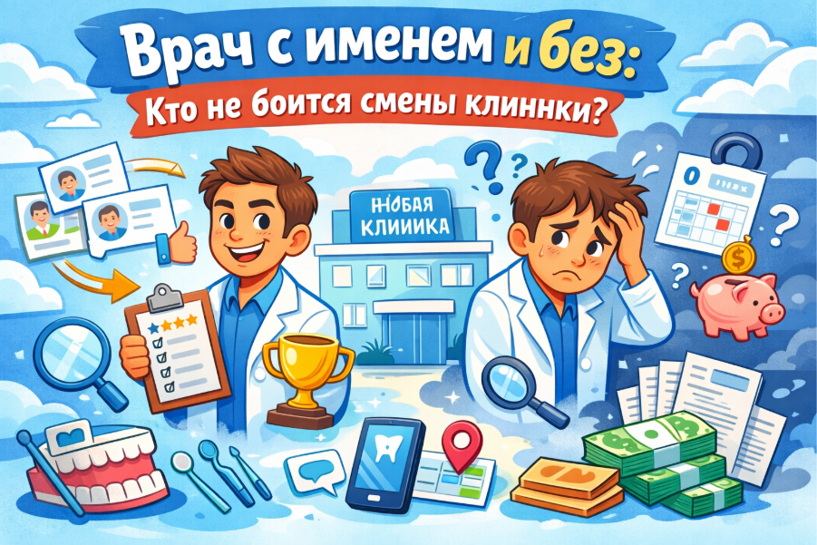 Врач с именем публикует простое сообщение: «Я переехал. Принимаю теперь по новому адресу». Его пациенты узнают об этом через отзывы, через агрегаторы, через сарафанное радио. Часть переходит за ним. Новая клиника рада его принять — и предлагает условия выше стандартных.