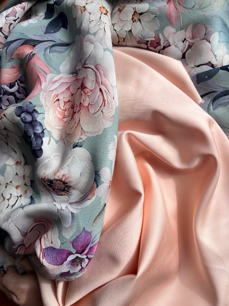 Ткань я ещё покупала осенью и думала сшить этот костюм в подарок на Новый год. Но расцветка прям весна, и я решила, что именно для 8 Марта это будет идеальный подарок.