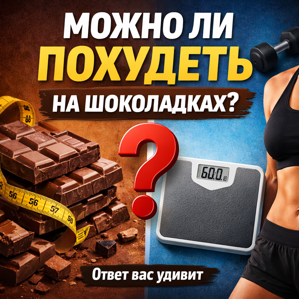 👉 **Да, теоретически можно похудеть, даже если есть только шоколадки.** Но это будет плохая идея по куче причин. Теперь нормально разберёмся. --- # 🍫 Можно ли похудеть на шоколадках? ## 📌 Главный принцип похудения Вес снижается, если есть: > **дефицит калорий** То есть если ты ешь меньше энергии, чем тратишь — ты худеешь. Неважно, это брокколи или шоколад. --- ## 🔬 Теоретический пример Допустим: * твоя норма 2500 ккал * ты ешь 1500 ккал шоколада 👉 будет дефицит 👉 вес пойдёт вниз Организму всё равно, откуда калории — он смотрит на баланс. --- # ❌ Но вот где начинается проблема Шоколад — это: * много сахара * много жира * почти нет белка * почти нет микроэлементов Если есть только шоколад: ### 1️⃣ Ты потеряешь не только жир, но и мышцы Белка мало → тело начнёт «жечь» мышечную ткань. ### 2️⃣ Будут скачки сахара * резкий подъём энергии * резкий спад * раздражительность * постоянный голод ### 3️⃣ Замедлится метаболизм Организм будет в стресс-режиме. --- # 🧠 Интересный факт Были реаль