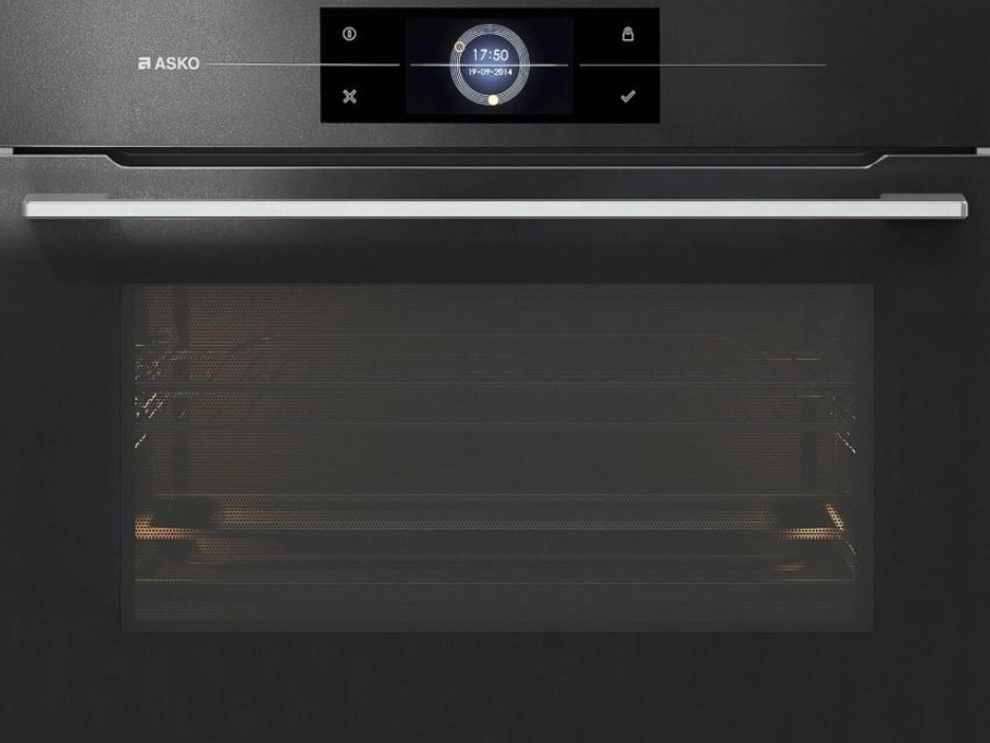 Компактный духовой шкаф Asko OCM8478G — это встраиваемый прибор, совмещающий функции духового шкафа и микроволновой печи. Модель относится к коллекции Elements, которая характеризуется минималистичным дизайном и управлением через сенсорный дисплей. Цвет корпуса — мягкий черный.