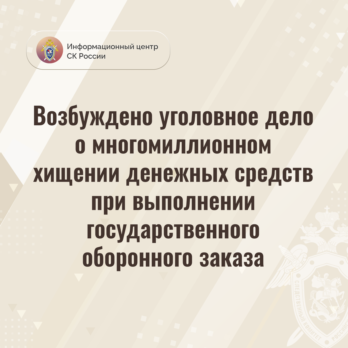 Возбуждено уголовное дело о многомиллионном хищении денежных средств при выполнении государственного оборонного заказа