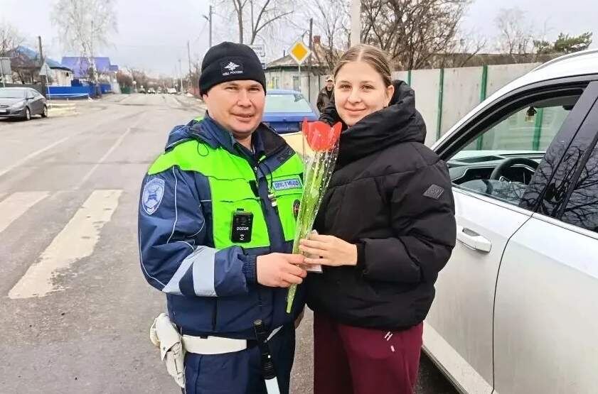 Тюльпаны вместо протоколов: сотрудники ГИБДД поздравили автоледи с 8 Марта