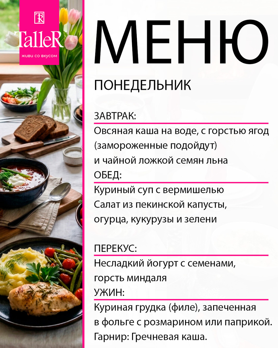 Оно простое, понятное и очень бюджетное, чтобы было вкусно, сытно и не ударило по кошельку. Вдохновляемся простыми рецептами и наслаждаемся каждым днём! Сохраняйте себе 📲 и готовьте с удовольствием! #ЗдоровоеПитание #СемейноеМеню #Рецепты #Рецепт #ПолезныеРецепты #ЭкономичноеМеню #TalleR #менюTalleR
