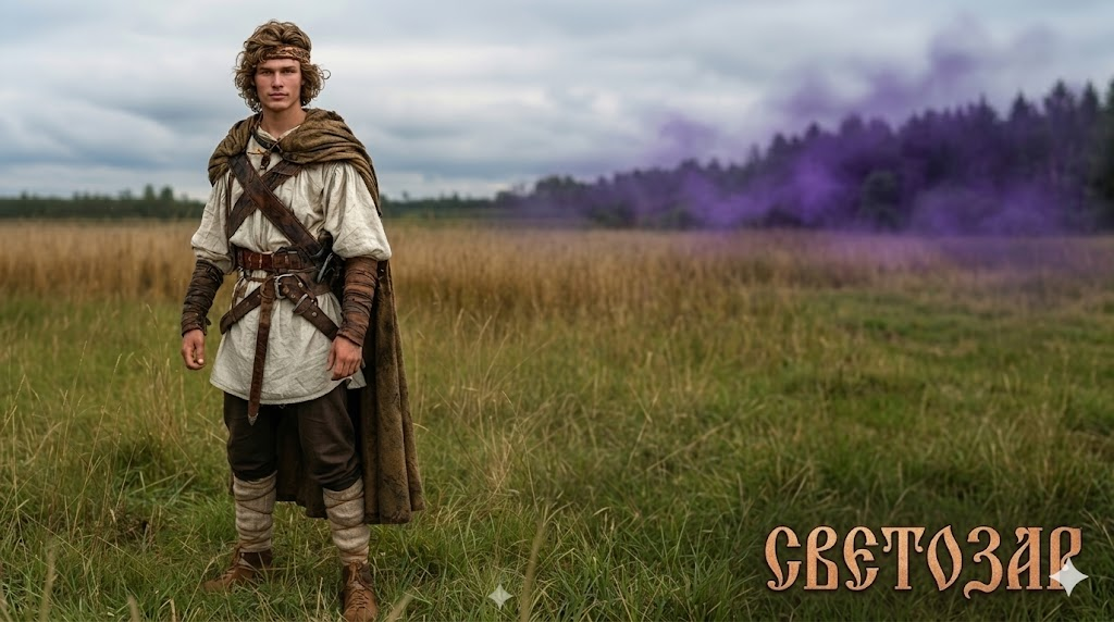 Светозар — семнадцатилетний воин, высокий и стройный, с лёгкой, но заметной силой в каждом движении. Его светлые волосы обычно выбиваются из-под кожаного ремешка на лбу, а в серо-голубых глазах есть одновременно и спокойствие, и скрытая решимость. В его облике чувствуется что-то от древних героев: он ещё очень молод, но уже носит себя так, будто давно привык к тяжести меча и ответственности за других. Одежда его проста — льняная рубаха, кожаные ремни, дорожный плащ. Всё практично, без показной роскоши. Он выглядит не как княжеский сын, а как настоящий воин приграничных земель: человек, который вырос среди лесов, дорог и тревожных вестей о набегах. На поясе у него оружие — и каждый предмет там не случайный. Вещи Светозара не просто снаряжение, а часть его истории. Светозар — бесстрашный боец, но его смелость не безрассудна. Он не ищет битвы ради славы и не стремится доказать свою силу. Его храбрость — это готовность встать между опасностью и теми, кто слабее. При всей воинской закалке