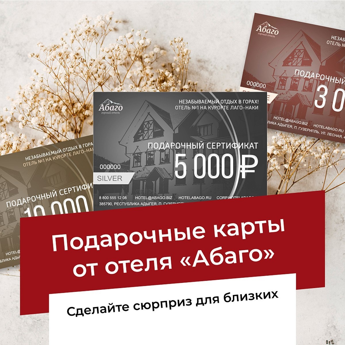 ? 🔥 Подарите им особенную возможность окунуться в море улыбок и весеннего настроения.🌷 В отеле «Абаго» можно оформить подарочный сертификат на 3 000 ₽, 5 000 ₽ или 10 000 ₽. Он действует в течение года в любые дни, за исключением государственных праздников. 📅 Наши подарочные сертификаты позволят вашим близким выбрать удобную дату и провести незабываемое время в Адыгее. Это идеальный подарок для тех, кто ценит природную красоту, уют и комфорт. Для заказа подарочных сертификатов свяжитесь с нашими менеджерами по ссылкам в закреплённом посте или в шапке профиля. 💯 Номер в ЕРОКСТИ «Абаго»: C012024014161