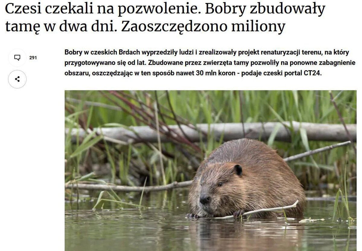 ! В Чехии бобры построили плотину быстрее, чем чиновники 👍 Власти 7 лет готовились: утверждали проект, согласовывали бюджет.. А когда с бюрократией покончили, на месте уже была гигантская плотина. Ее построили бобры за 2 дня. И она даже подходит под все нормативы безопасности! Если оставят, это сэкономит 30 млн крон.