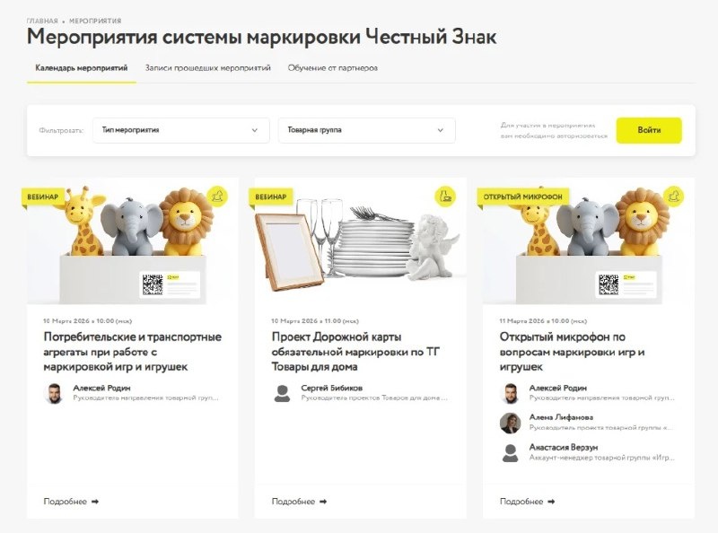 Узнать больше о маркировке товаров можно на вебинарах от экспертов. Ищите интересующее вас мероприятие в календаре мероприятий системы маркировки Честный знак Подробная информация по ссылке https://честныйзнак.рф/lectures/