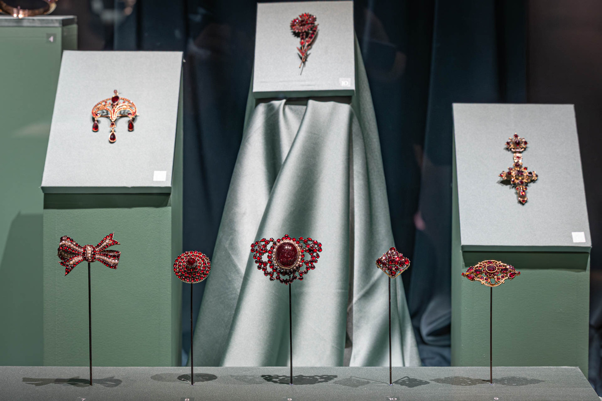 Рассмотрим ювелирные произведения с гранатами, которые можно увидеть на выставке «Очарование красоты. Из истории ювелирных украшений в России» до 29 июня 2026 года