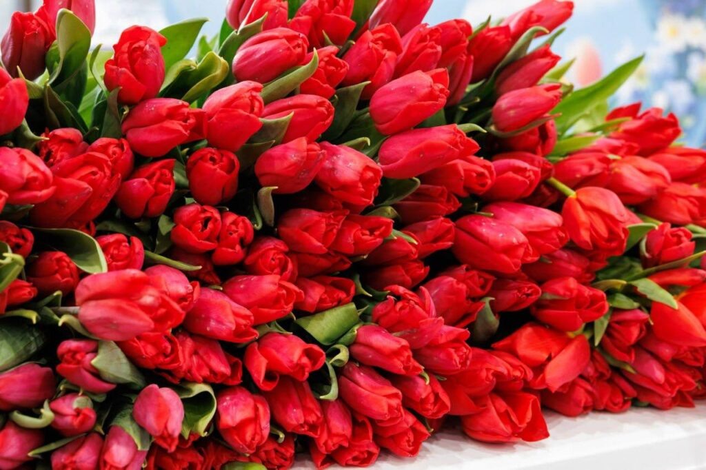 В аэропорту Сочи подарили пассажиркам тысячу тюльпанов к 8 Марта