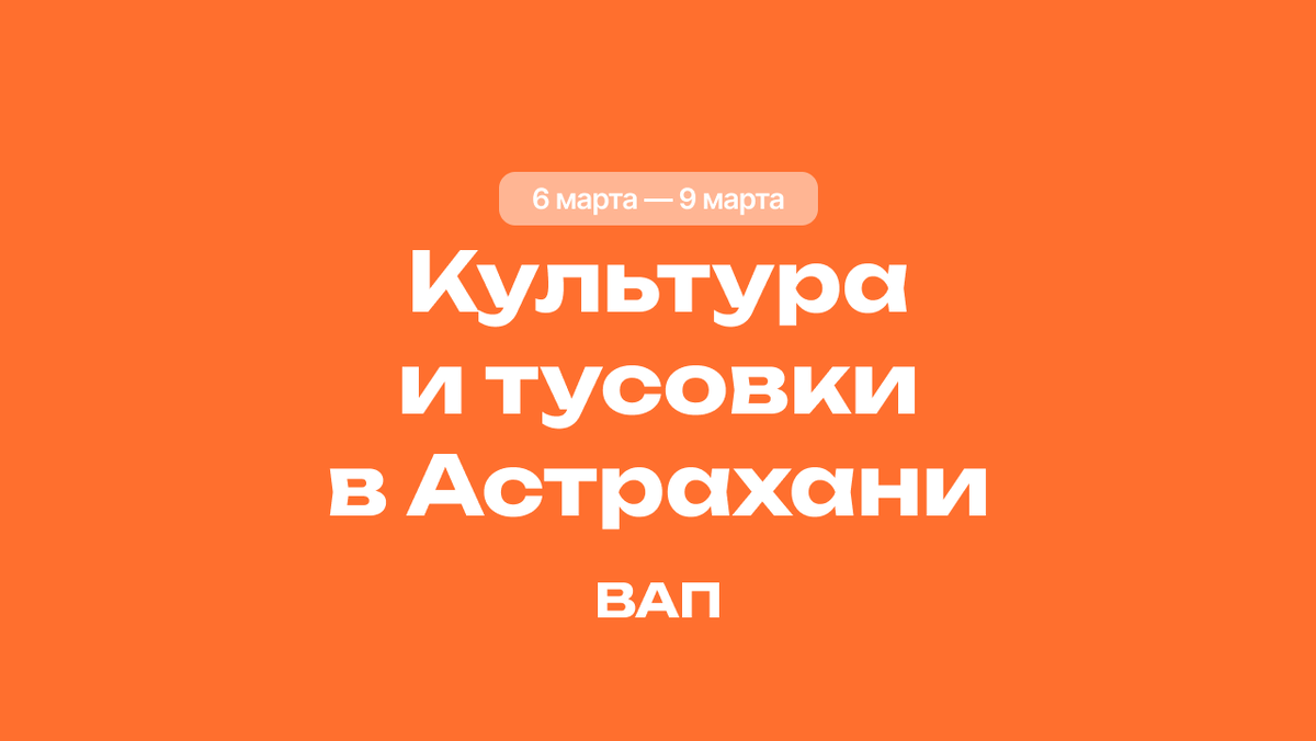 Собрали список интересных событий в Астрахани на грядущие выходные по дням. Рассказываем про спортивные, культурные и тусовки на 6 марта - 9 марта.