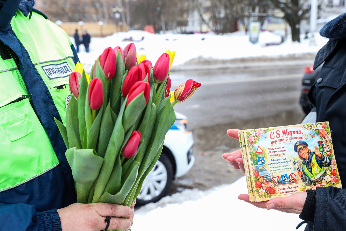 Но вместо традиционной фразы: «Пожалуйста, предъявите документы» автоледи слышали приятные слова, принимали открытки и цветы. А ещё могли сделать яркие фото на память.