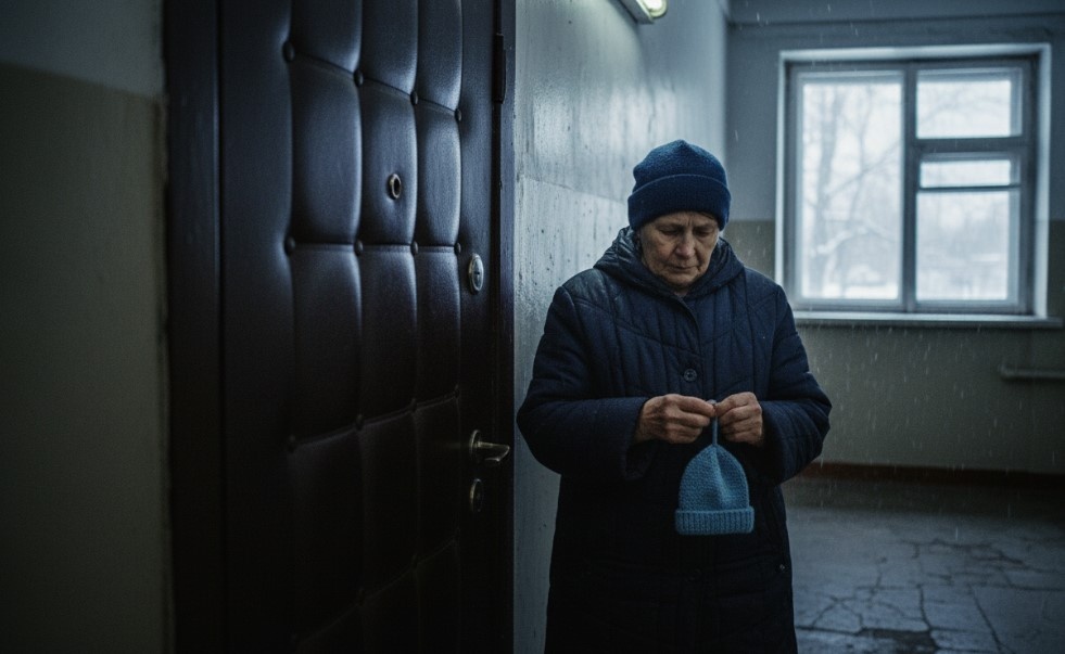 Елена Михайловна стояла в подъезде, прижимая к груди голубую шапочку, и смотрела на закрытую дверь. Из квартиры доносился звук телевизора и... детский смех. Артёмка не спал.