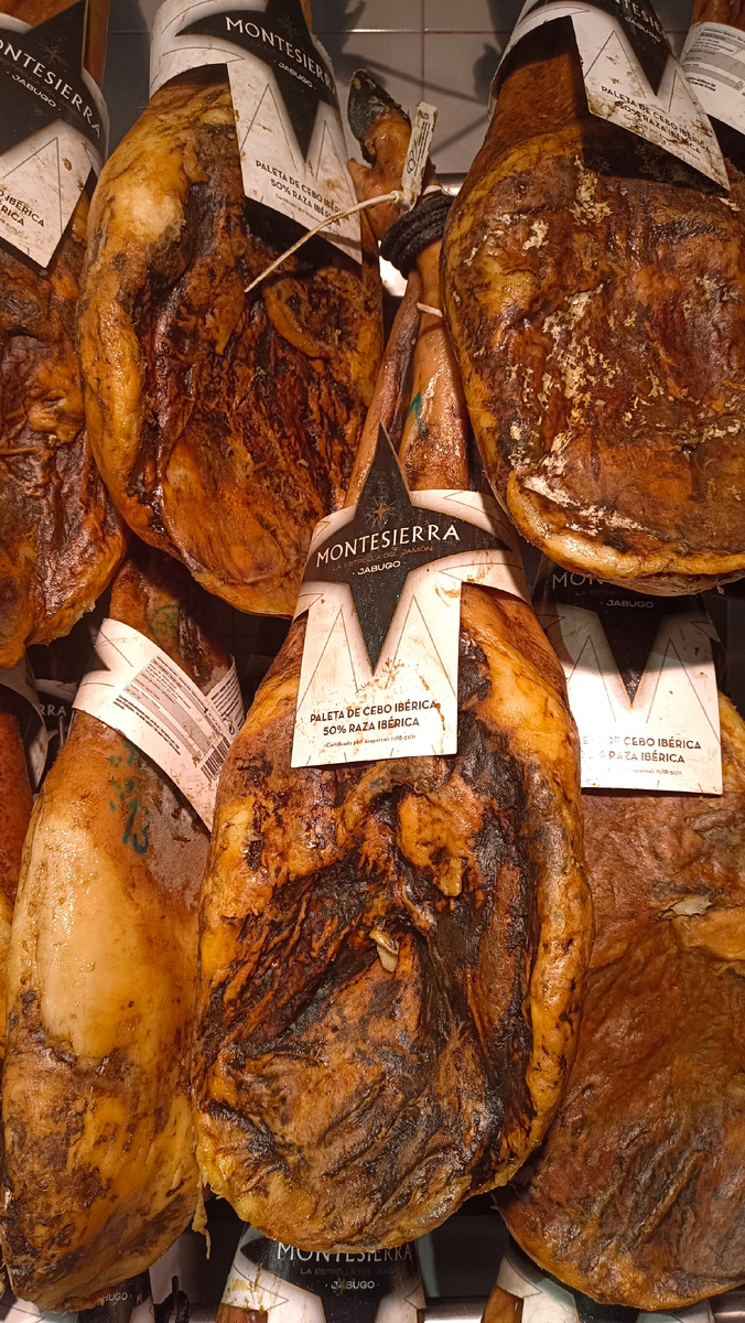 Paleta ibérica de cebo — это передняя нога иберийской свиньи, один из самых традиционных продуктов испанской гастрономии. В отличие от jamón, который делают из задней ноги, paleta производится из передней лопатки. Именно из-за анатомии животного эта часть меньше по размеру, но мясо здесь более пронизано жиром и сухожилиями, поэтому вкус часто получается даже более насыщенным и ярким.