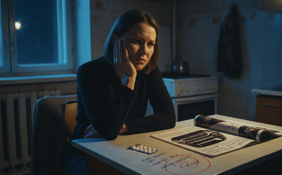Лариса пришла домой. На кухонном столе лежал журнал «За рулём», открытый на странице с обзором Prado. Константин обвёл ручкой характеристики и написал на полях: «Идеальный вариант».