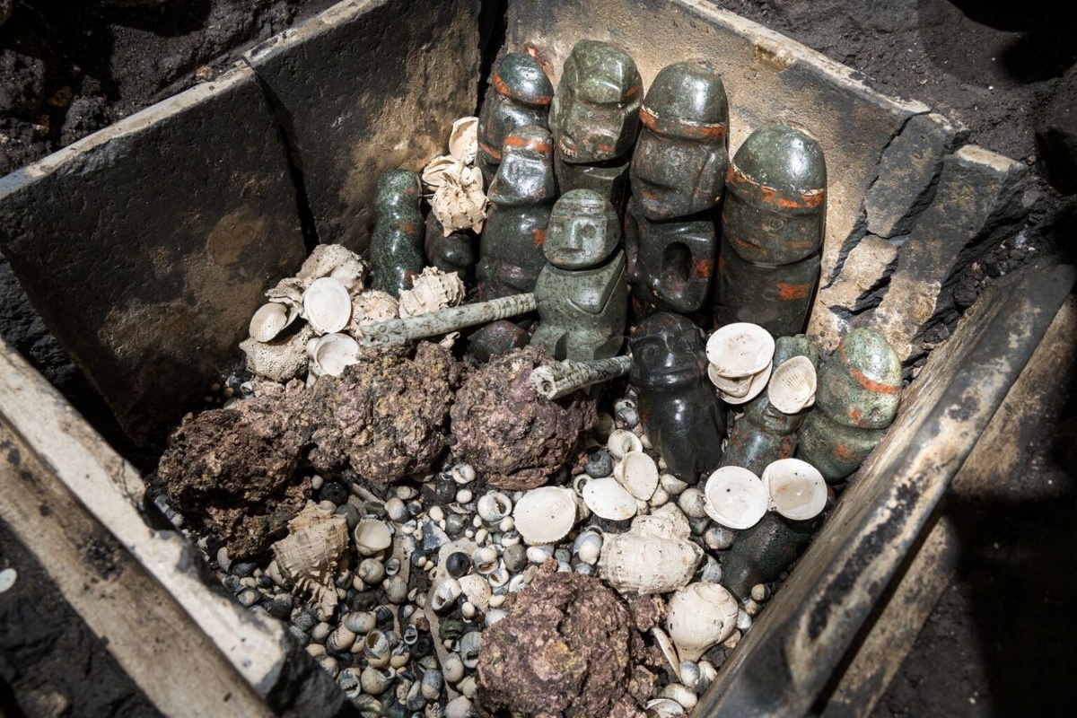 Вероятно, это была одна из самых грандиозных церемоний в их древней столице. Археологи, работающие на раскопках известного ацтекского святилища Темпло Майор в современном Мехико, обнаружили поистине огромный клад артефактов, оставленных в качестве подношений богам. Учёные извлекли из земли десятки нефритовых фигурок, тысячи фрагментов украшений из морских раковин, копала, а также мегалитические скульптуры. По словам авторов открытия, весьма вероятно, что все эти богатства были погребены одновременно с другими подобными находками прошлых лет. Фигурки выполнены в стилистике археологической культуры мецкала, распространённой некогда на территории современного штата Герреро. Интересно, что на момент проведения церемонии в середине XV века они уже являлись предметами старины: возраст некоторых из них оценивается примерно в 1000 лет. По словам археологов, это были культовые статуэтки, взятые ацтеками как трофеи после завоевания региона Герреро. Их привезли в столицу Теночтитлан, которая расп