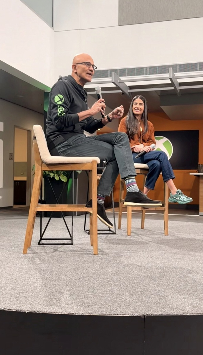 Генеральный директор Microsoft Сатья Наделла появился на внутреннем собрании Xbox в толстовке с логотипом Xbox. Он обсудил будущее Xbox вместе с новым генеральным директором Microsoft Gaming Ашей Шармой. #xbox@inyoueyes