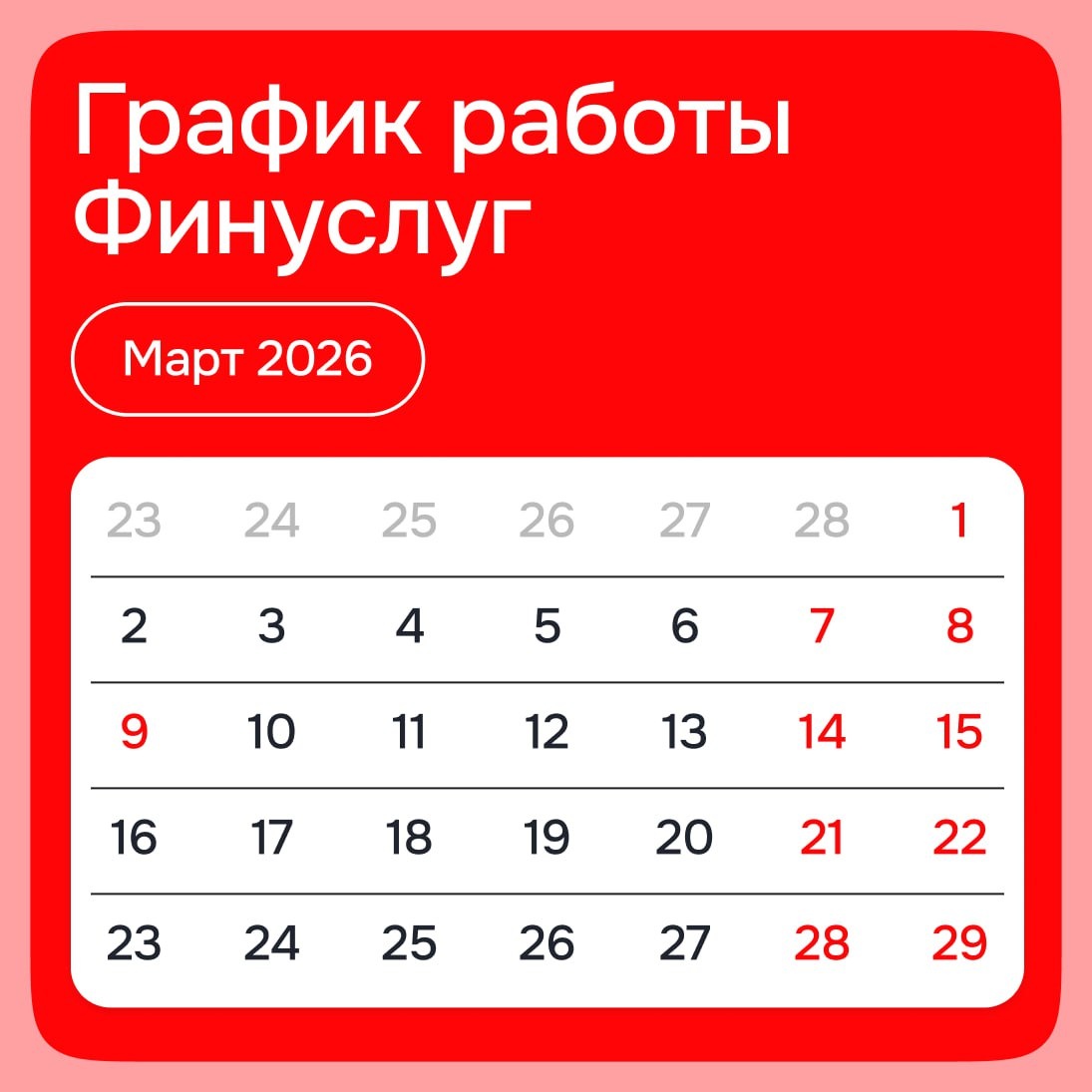 С 7 по 9 марта большинство сервисов работают в обычном режиме, но есть нюансы. 🙂 Кошелек Переводы по СБП работают 24/7 все праздничные дни Переводы по реквизитам 7 и 8 марта работать не будут. Они будут исполнены 9 марта соответственно. 🙂 Вклады Заявку подать можно в любой день, но исполнение зависит от режима банка-партнера. Дата закрытия вклада у большинства банков переносится на 10 марта. 🙂 Облигации Заявки на покупку, поданные сегодня после 16:00 мск, исполнят 10 марта. Сроки продажи зависят от эмитента — подробнее в статье. 🙂 Фонды Заявки на покупку, продажу и обмен ОПИФ на Финуслугах, оформленные с 6 по 9 марта включительно, УК обработают начиная с 10 марта. 🙂 Служба поддержки Вы сможете связаться с нашими операторами каждый день с 06:00 до 23:59 мск. Можно позвонить по номеру 8 (800) 505-32-32 или +7 (495) 145-32-32 либо написать нам в чат на сайте. Подробный график — в статье.