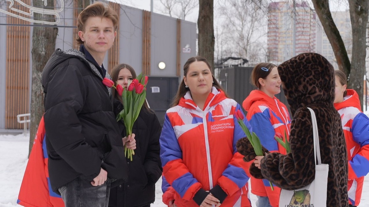 💐В преддверии Международного женского дня в Пушкино «Волонтёры Подмосковья» поздравили жительниц города, вручали всем главный символ праздника - тюльпаны.