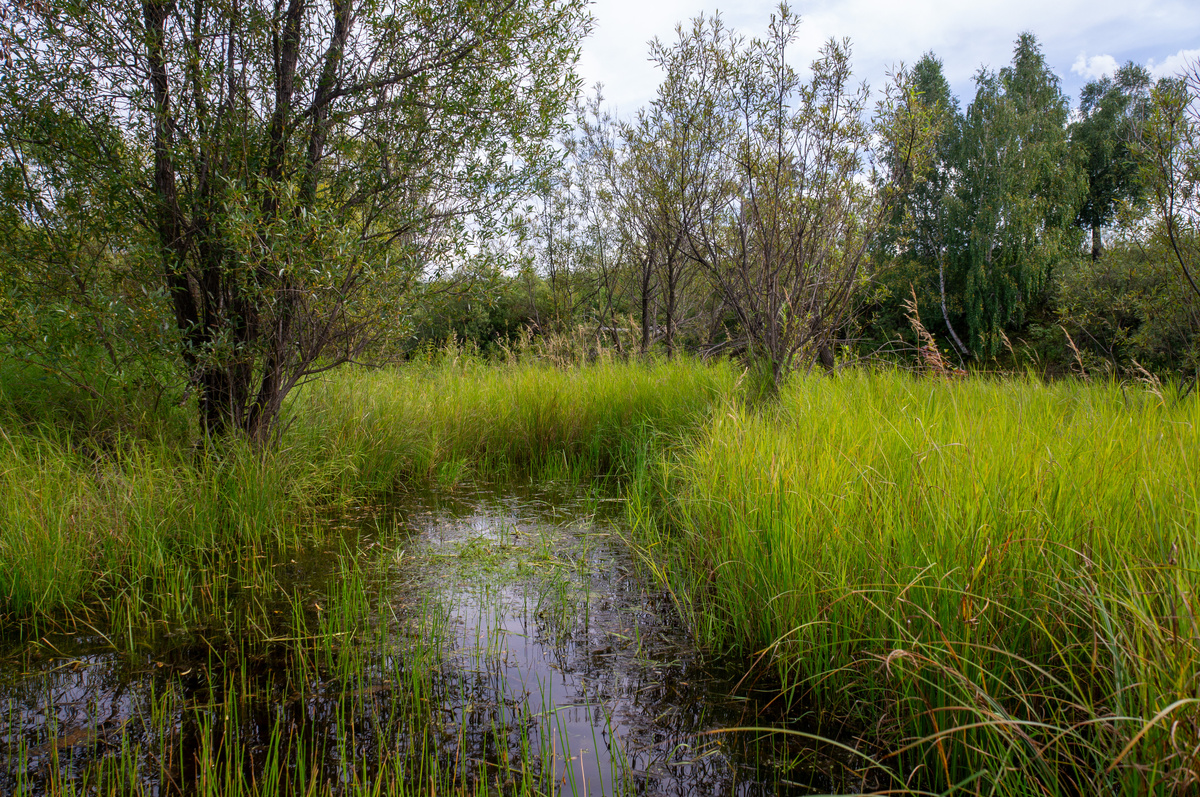 В прошлый раз обещал рассказ про болото. Но там была настоящая топь, трясина, в которую можно ухнуть с головой. Мы туда не пойдем. А вот небольшое болотце у реки, со старицами да плавучими островами в самый раз для того, чтобы познакомиться с этой необычной экосистемой. Да правда, что бы там могло быть, топь да трава. Но есть, есть в них какое-то свое очарование. Помню, когда останавливался в отеле «Цимус» в Кемерово, в шикарном (и это не шутка) номере за две с половиной тысячи, на стене висел болотный пейзаж. Художник сумел передать то, особенное настроение. И я тоже попробую. Подходим, высаживаемся. Выхожу на берег, под ногами твердая земля, кругом высокая, но мягкая трава. Но посмотришь вокруг — и прямо в траве блеснет зеркало воды. Осторожно прохожу. Ноги неглубоко погружаются в теплую воду. Да, это особенный мир, здесь все как будто не так. Не водоем и не суша. Другие растения, другие обитатели. Стрекоза с большими голубыми глазами. Немного поглубже — из-под ног поднимаются пузырь