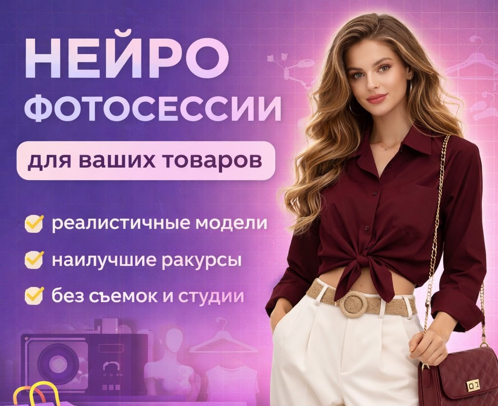 ! Если вы продаёте товары на маркетплейсах и вам постоянно нужны новые фотографии: для карточек, рекламы, баннеров и соцсетей. Но классическая фотосессия — это долго и дорого: студия, модель, стилист, фотограф. Я помогу вам сделать нейрофотосессии для товаров — современные фотосессии с помощью нейросетей. Если вам нужны продающие фото для карточек товара, напишите мне — обсудим условия ! Стоимость сейчас - самая низкая, самая выгодная, самая смешная. Сроки выполнения - максимально быстрые. ➡️ Подробнее здесь