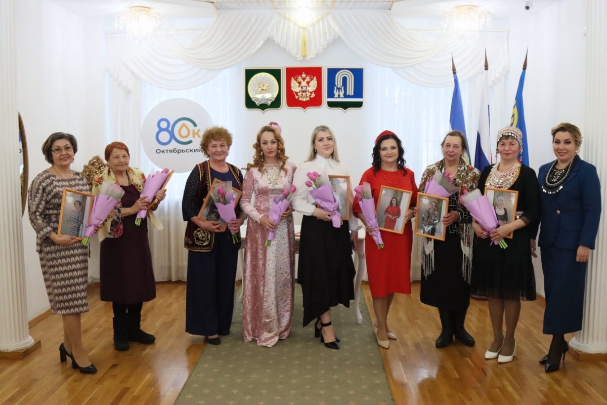 В торжественном зале Дворца бракосочетания ЦНК чествовали красивых, любимых и счастливых женщин Октябрьского. Участницы мероприятия отдохнули, познакомились друг с другом, рассказали каждая о себе и внесли подписи в Почётную книгу гостей Дворца бракосочетания. На празднике их ждали музыкальные номера и оригинальная церемония: женщинам предложили скрепить пожелания в особом песочном сосуде. Собравшихся на торжество приветствовала директор Центра национальных культур Гульназ Сахабутдинова, вручившая гостьям цветы и их портреты.