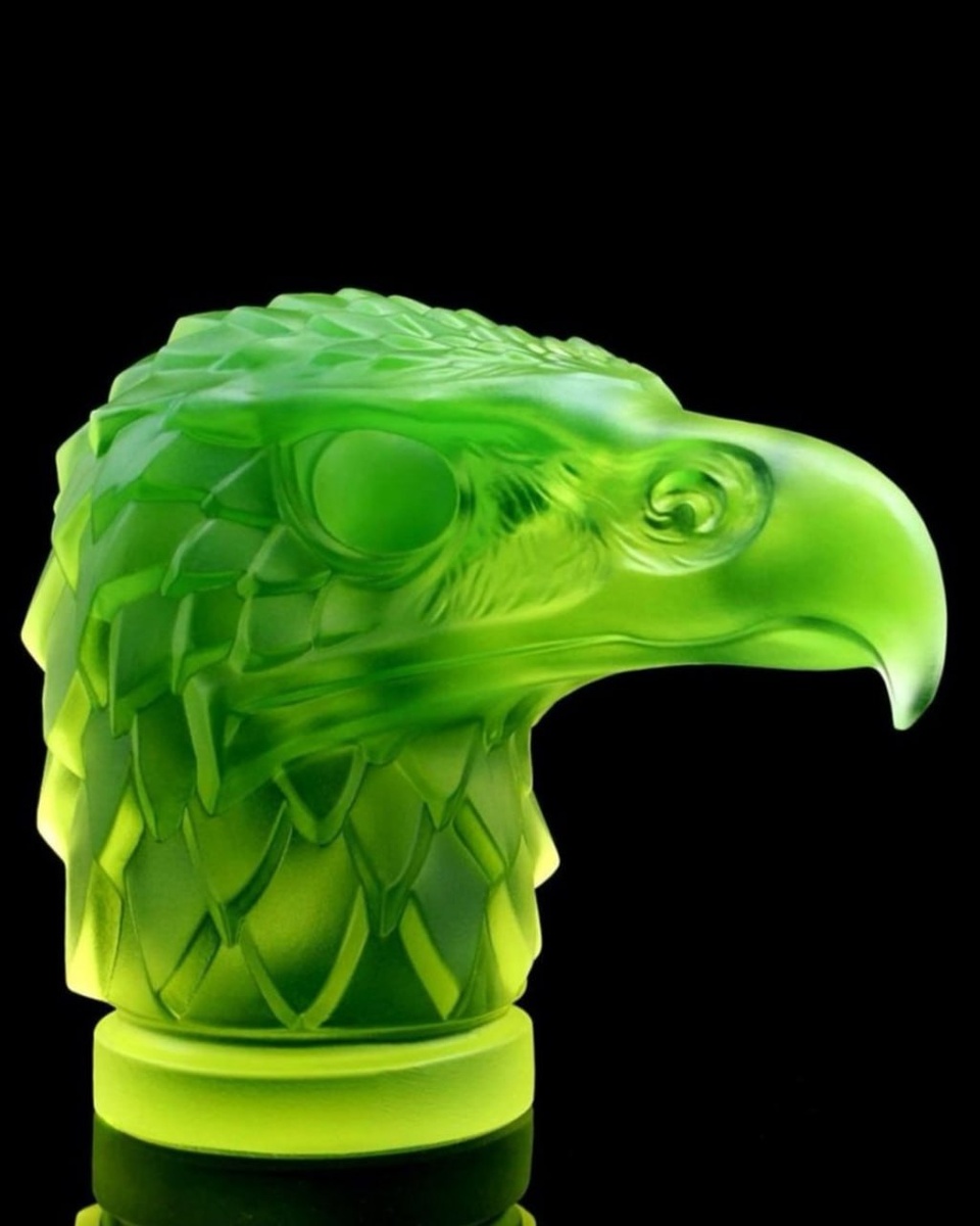 Фото от HeritageMatterz показан набалдашник для капота автомобиля от французского декоратора эпохи модерна Рене Лалика. Он светится в темноте, потому что сделан из модного в начале XX века уранового стекла. Такое начали делать еще в XIX веке. В России с 1830 года выпускал изделия из уранового стекла Гусевский завод. Для интенсивного свечения, или флуоресценции стекла, использовали кальциевые, цинковые, бариевые составы с высоким содержанием калия и бора. Для изделий с 1900-х гг. характерно высокое содержание урана — до 25%. Несмотря на повышенную смертности стеклодувов, работавших с урановым стеклом, посуда и декор из него были популярны вплоть до середины XX века. Потом опомнились, конечно, радиация, все дела.