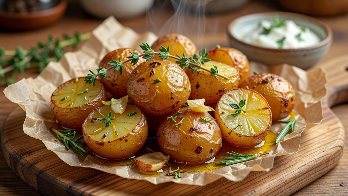 Оливковое масло при нагревании раскрывает свою фруктовую ноту и «запечатывает» аромат трав внутри каждого клубня. Розмарин даёт хвойную, чуть камфорную свежесть. Тимьян — тёплую, земляную пряность. Чеснок — глубину и характер. Вместе — идеальный квартет, в котором каждый инструмент на своём месте.