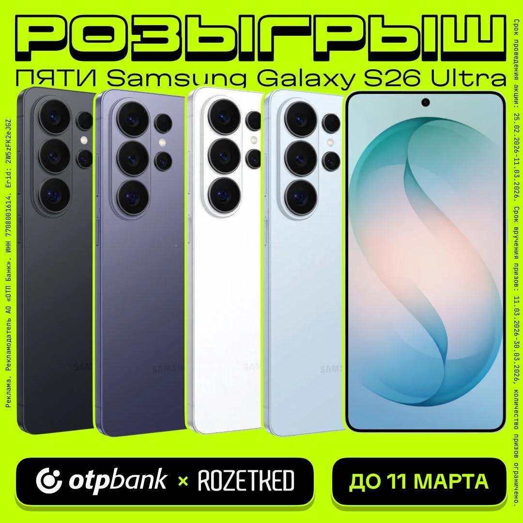 Дружеское напоминание о розыгрыше пяти Samsung Galaxy S26 Ultra совместно с «ОТП Банком» Итоги подведём уже на следующей неделе, 11 марта в 16:00 по МСК. Условия просты, призы желанны. Успевайте!