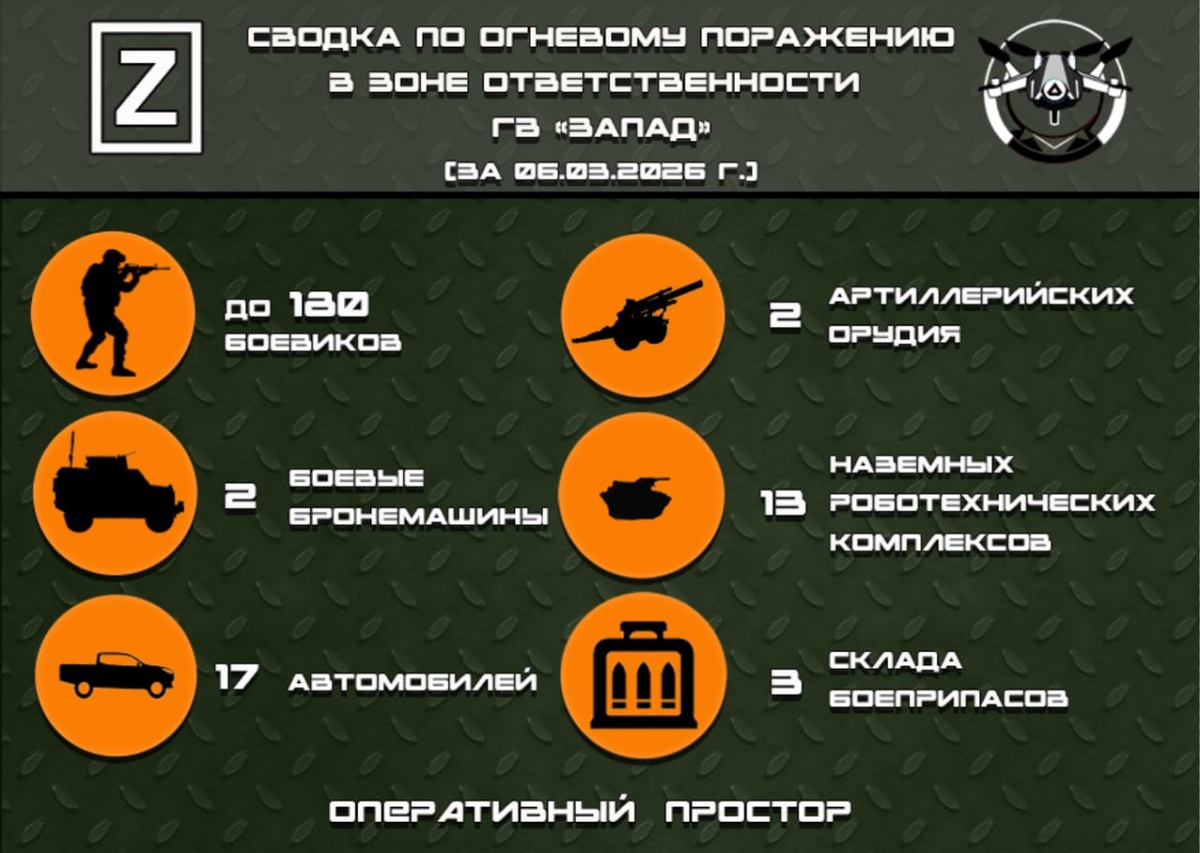 Сводка по огневому поражению в зоне ответственности ГВ «Запад» за 06.03.2026 г
