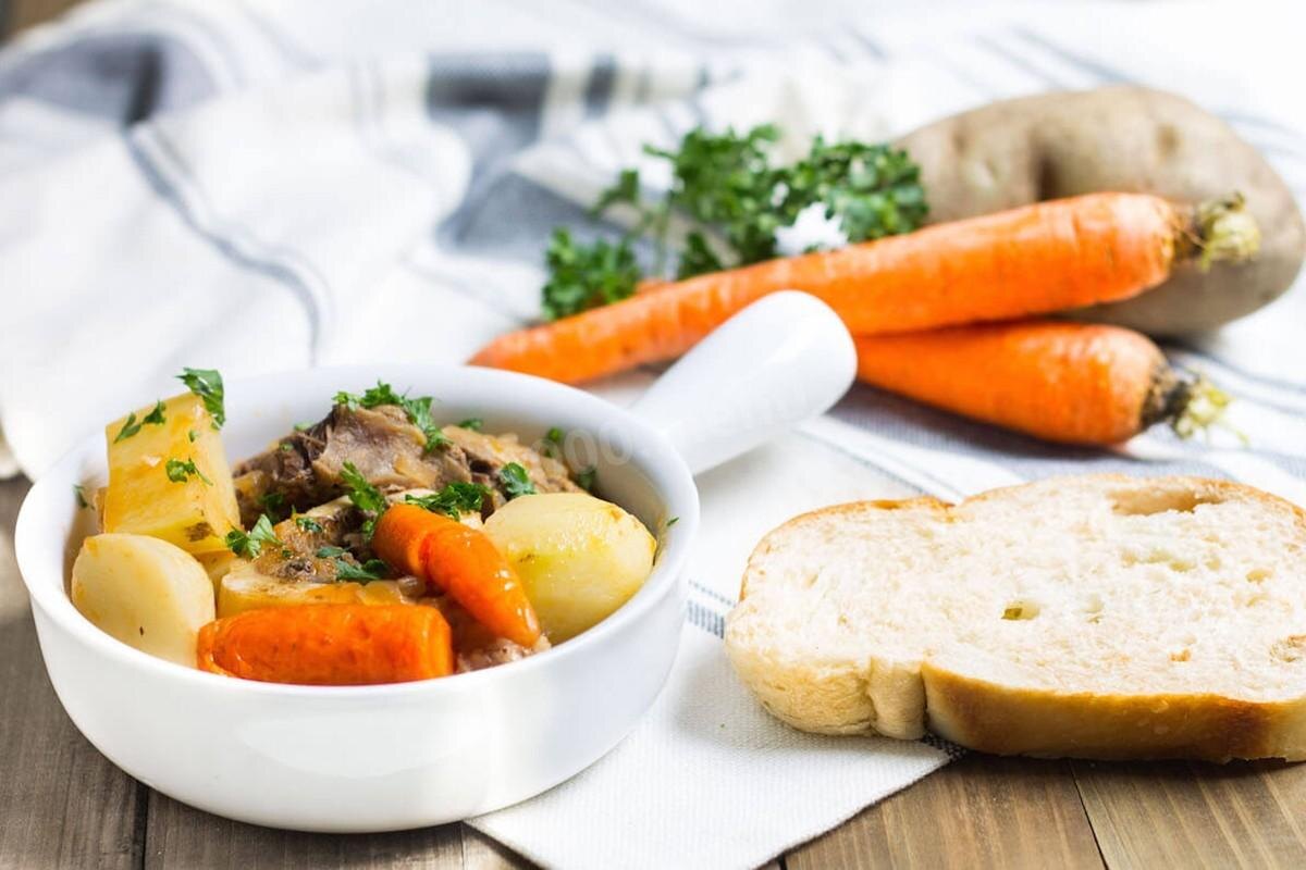 1. Разберите утку на крупные куски, вымойте и просушите. 2. Почистите и вымойте овощи, все крупно нарежьте. Яблоки почистите и нарежьте на дольки. 3. Смешайте майонез, томатный соус, уксус и специи, добавьте соль и хорошо обмажьте этой смесью утку. Отправьте мясо в мультиварку. К мясу добавьте лук, морковку и яблоки. Если остался соус для утки, выложите его в чашу тоже. Хорошо все перемешайте. 4. Установите сверху поддон для варки на пару, в него уложите картошку, присолите. 5. Закройте мультиварку, установите режим Выпечка на 1 час. После этого проверьте мясо на готовность. Если не приготовилось - перемешайте и готовьте еще. Приятного!