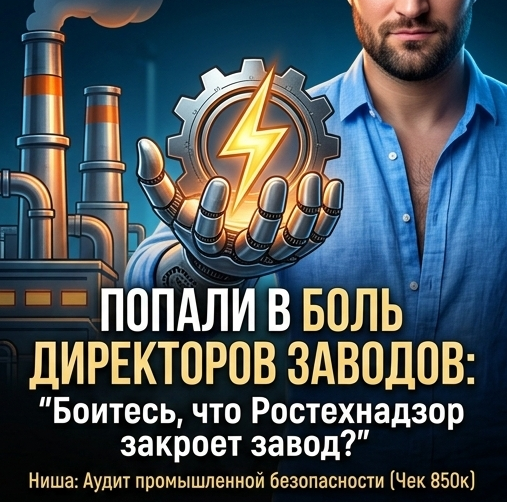 3. Правильный оффер. Не "Аудит промышленной безопасности" (скучно, формально). А "Боитесь, что Ростехнадзор закроет завод?" (боль).
