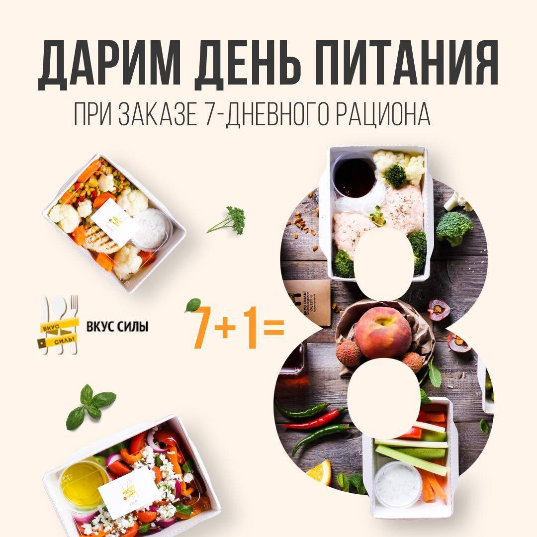 💕 8 марта — день женственности и красоты. Нет ничего лучше, чем посвятить это время своим любимым, а вопрос питания возьмет на себя Вкус Силы🥦 Оформите 7-дневный рацион до 8 марта и получите день питания в подарок от нашего сервиса🎁 Оставьте заявку по ссылке, устройте себе гастрономический отпуск: http://vkussili.com/8march