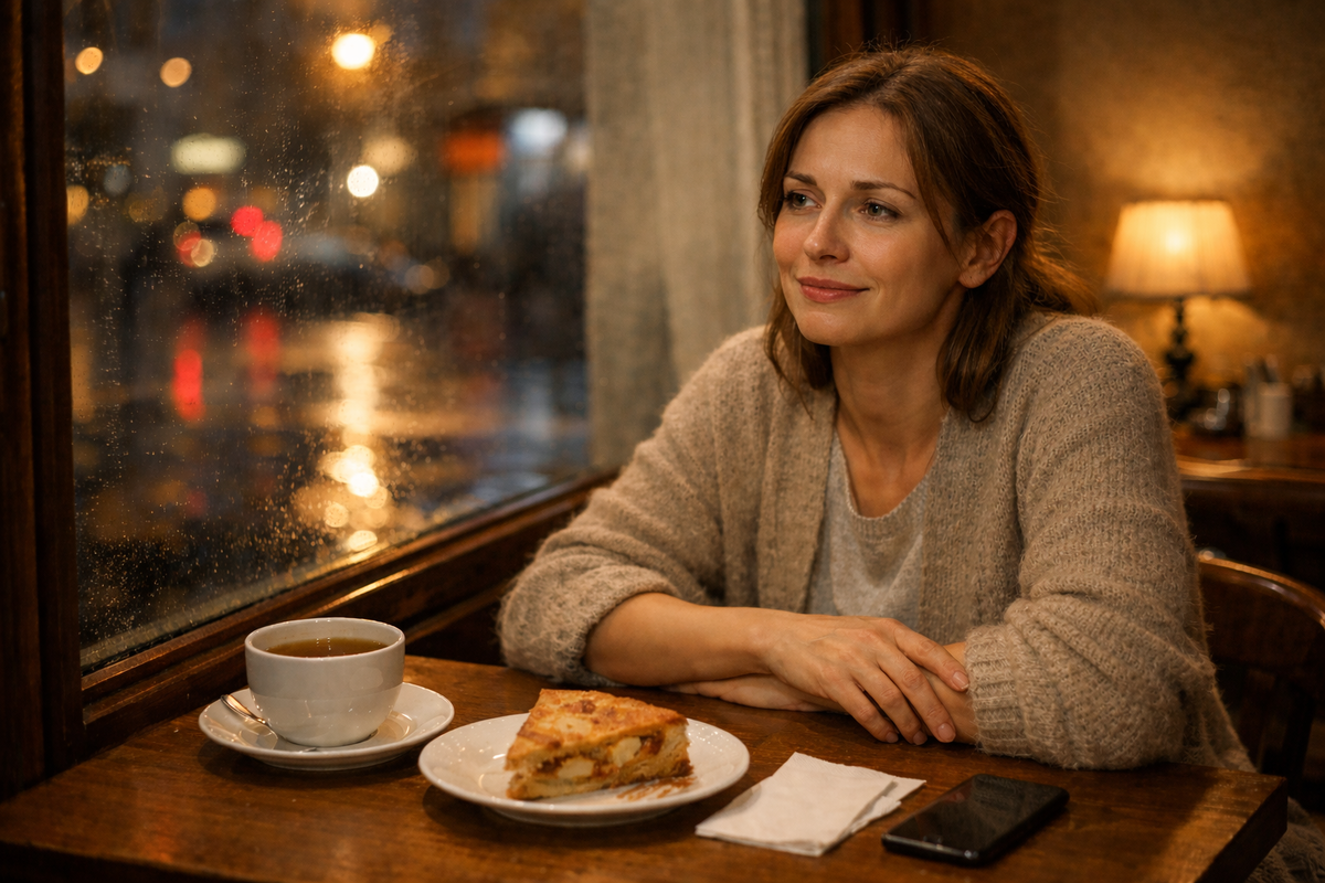 Я выбрала столик у окна. Сняла пальто и вдруг почувствовала себя… странно лёгкой. Как будто я не только пальто сняла, а ещё и какую-то чужую обязанность.