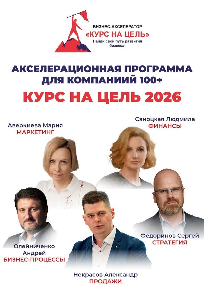 Заявки принимаются в форме на сайте (в исходном сообщении). Программа ориентированна компания с оборотом от 100 млн рублей в год для разработки стратегии развития до оборота в 1 миллиард и выше. Акселерационная программа "Курс на цель" (поток 2026 года) Развивайте свой бизнес в ходе интенсивной программы вместе с растущими компаниями! Формат программы - участвует вся управленческая команда компании - ежемесячные очные модули на целый день - задачи на внедрение бизнес-инструментов - еженедельный бизнес-трекинг - обмен опытом между участниками Опционально: - бизнес-визиты в компании - лидеры рынка - встречи с выпускниками программы - тренинг "Навыки руководителя на примере яхтенной команды" Старт в апреле 2026 года! Предварительная регистрация на сайте kurs18.ru/