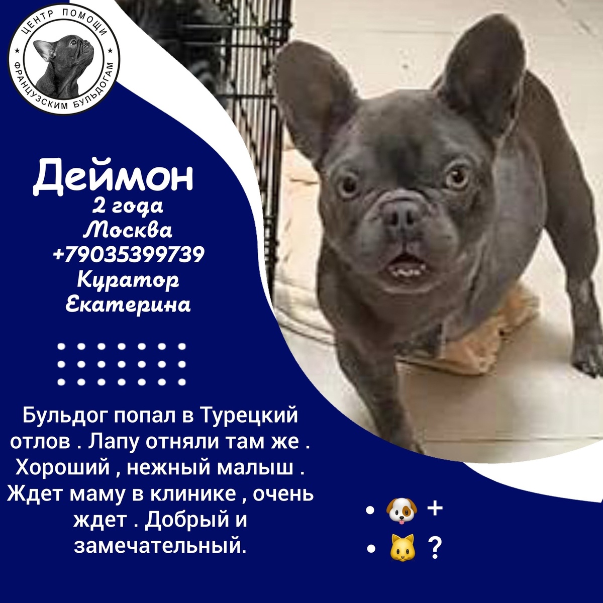 #Деймон@frenchbull_help https://vk.ru/topic-144285450_56860968 В службу отлова поступил звонок: сообщалось, что около забора находится крупный пес породы кане-корсо, которого срочно необходимо забрать и изолировать. Волонтеры поспешили на место происшествия, но встретили совершенно другого зверька. Вместо сильного кане-корсо их взгляд упал на маленькую фигурку французского бульдога, дрожащего от ужаса и пытающегося освободиться от пут😟 Малыша девочки сразу же доставили в ветеринарную клинику, где врачи заметили необычное утолщение на его маленькой лапке. Чтобы обезопасить его от возможных последствий, ветеринары решились на операцию, удалив больную конечность. Лишь позже выяснилось, что угрозы явной здоровью животного не существовало, и причина патологии оказалась гораздо менее серьезной - остеомиелит. Волонтёры из Турции начали искать новые руки для Деймона, пока он находился в клинике. 👉 https://vk.cc/cUOyRl