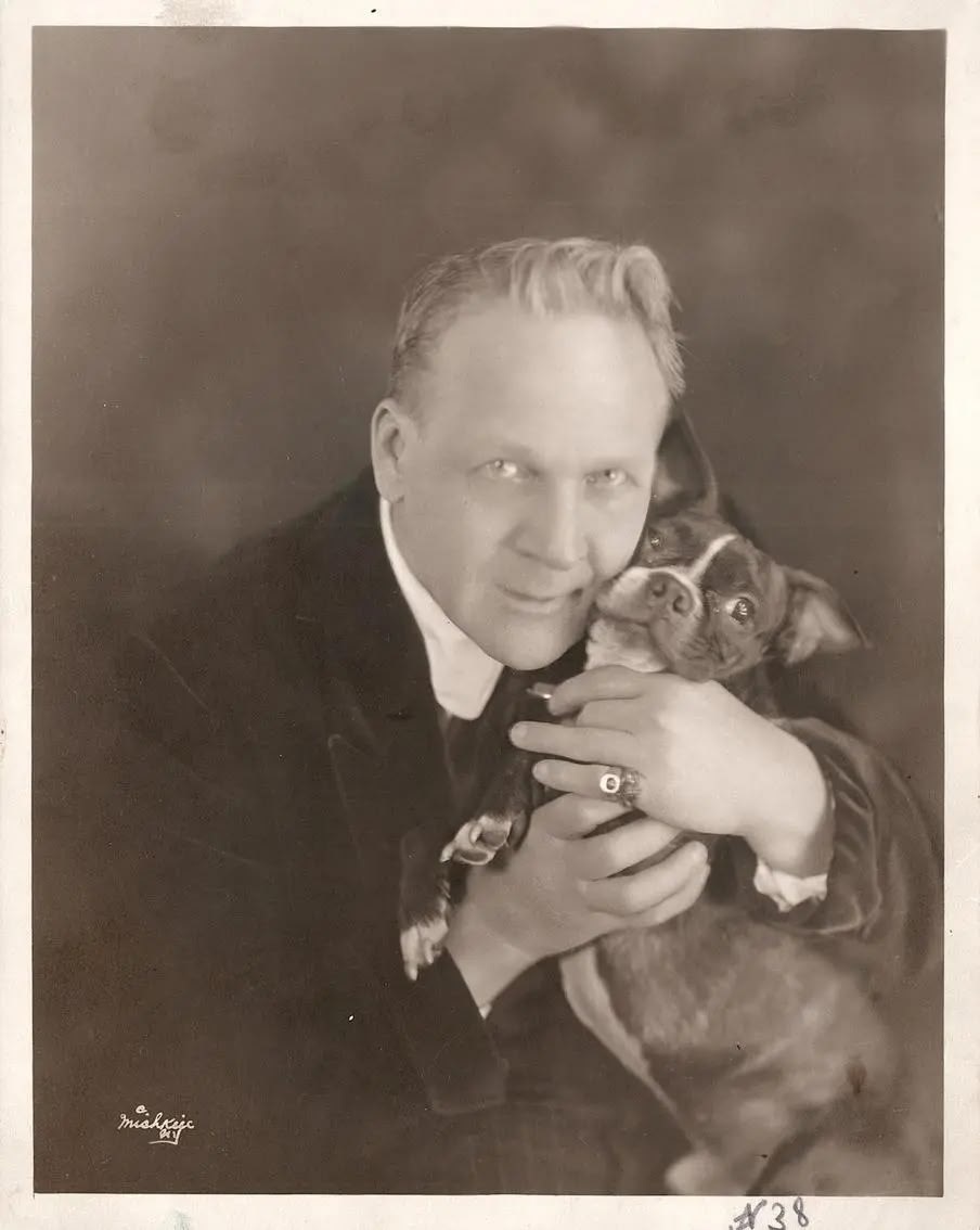 ⬇ Любимые питомцы Фёдора Шаляпина Великий артист обожал собак. В его большой семье жили несколько французских бульдогов и мопсов, которых звали Булька, Ройка, Харлашка и Микитка. Самой известной собакой Шаляпина был французский бульдог Булька (фото 1). По воспоминаниям дочери исполнителя Ирины, Фёдор Иванович настолько любил своего питомца, что брал его с собой в театр и на гастроли. Булька был своего рода знаменитостью, его знала половина Москвы. Позже появился Ройка — белоснежный бульдог с характерным черным пятном вокруг глаза, напоминающим пиратскую повязку. Именно Ройка запечатлен рядом с хозяином на знаменитом портрете работы Бориса Кустодиева (фото 2). Присутствие собаки на картине было непременным условием самого артиста. Портрет сейчас хранится в доме-музее Шаляпина в Санкт-Петербурге. Эмигрировав за границу, Шаляпин забрал всех своих собак с собой. #Шаляпин