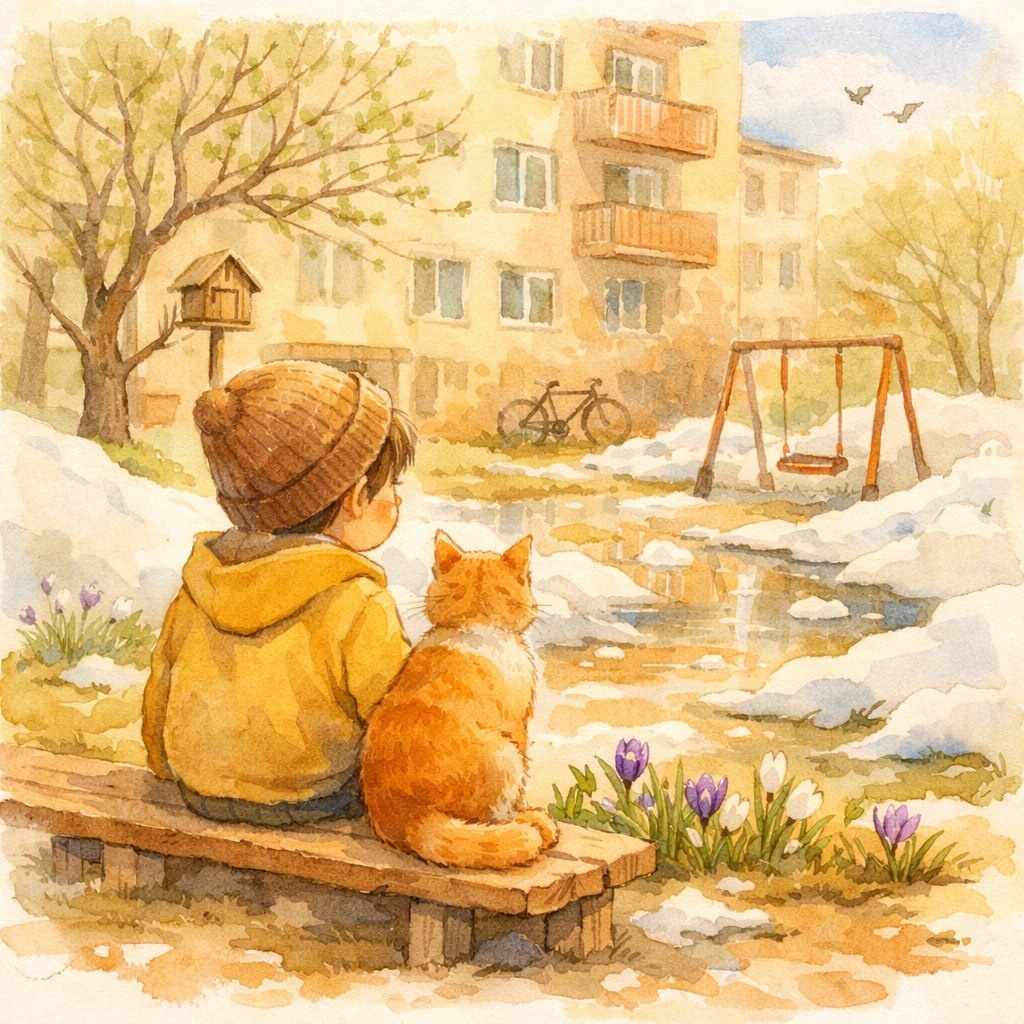 С того дня Гоша и Палёнка каждый день выходили во двор, чтобы следить за тем, как растает снег, как появляются цветы и как оживает природа. Весна приносила им радость и новые приключения, а дружба между мальчиком и котиком становилась только крепче.