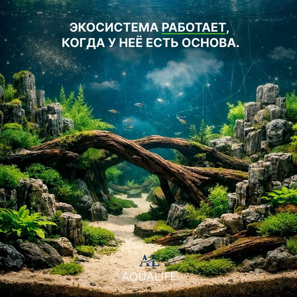 Вода прозрачная, тесты в пределах нормы, рыба активна. И именно в таких системах чаще всего случаются внезапные вспышки. Потому что стабильность в аквариуме — это микробное равновесие, которое мы не видим. После лечения антибиотиками, пересадок и стресса, активной сифонки, запуска нового биотопа или резкой подмены воды микрофлора может ослабнуть. А освободившееся место быстро занимают нежелательные микроорганизмы, это не всегда видно сразу. AquaLife Биобаланс — это не бактерии для запуска. Это инструмент профилактики и долгосрочного контроля. Он: ✔ подавляет гнилостную и патогенную микрофлору ✔ формирует защитную микробную плёнку ✔ помогает системе восстановиться после антибиотиков ✔ убирает фоновую мутность и запах ✔ снижает риск повторных вспышек Проще говоря — это страховка для стабильной системы. Сильный аквариум — это не тот, который выдержал вспышку, а тот, в котором она не произошла. Биобаланс — это управление рисками, долгая спокойная стабильность. Купить AquaLife Биобала